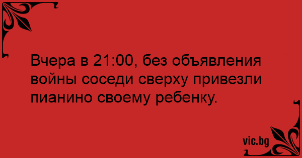 Вчера в 21:00, без объявления войны соседи сверху привезли пианино своему ребенку.