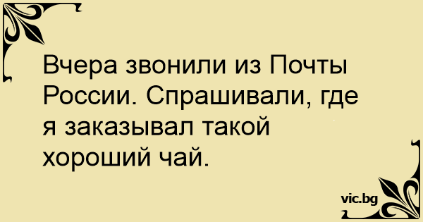 Вчера звонили из Почты России. Спрашивали, где я заказывал такой хороший чай.