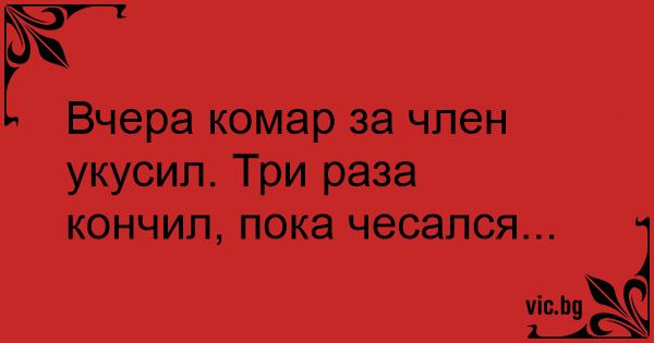 Вчера комар за члeн укусил. Три раза кончил, пока чесался...