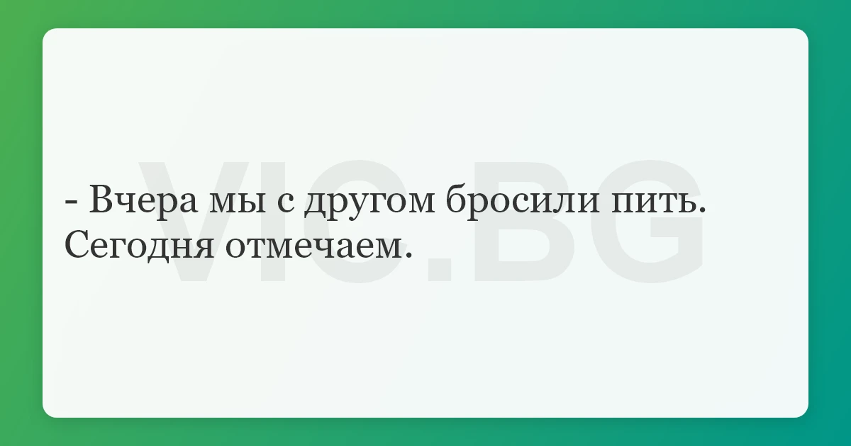 - Вчера мы с другом бросили пить. Сегодня отмечаем.