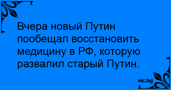 Вчера новый Путин пообещал восстановить медицину в РФ, которую развалил старый Путин.