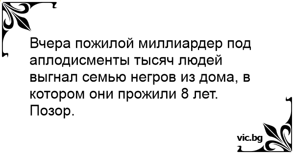 Вчера пожилой миллиардер под аплодисменты тысяч людей выгнал семью негров из дома, в котором они прожили 8 лет.