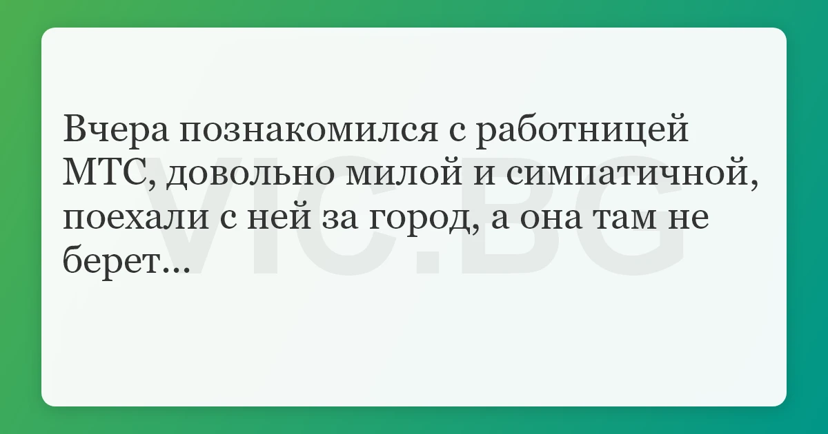 Вчера познакомился с работницей МТС, довольно милой и симпатичной, поехали с ней за город, а она там не берет...