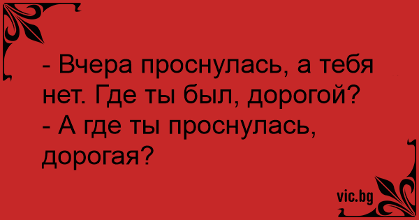 - Вчера проснулась, а тебя нет. Где ты был, дорогой?