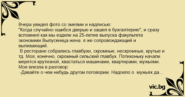 "Когда случайно ошибся дверью и зашел в бухгалтерию", и сразу вспомнил как мы ездили на 25-летие выпуска факультета экономики.Выпускница-жена. я же сопровождающий и выпивающий.