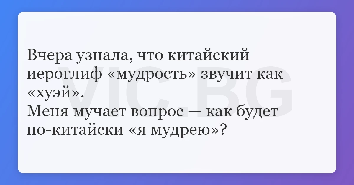 Вчера узнала, что китайский иероглиф «мудрость» звучит как «хуэй».