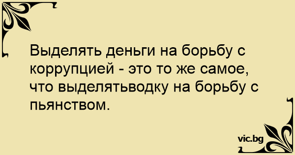 Выделять деньги на борьбу с коррупцией - это то же самое, что выделятьводку на борьбу с пьянством.