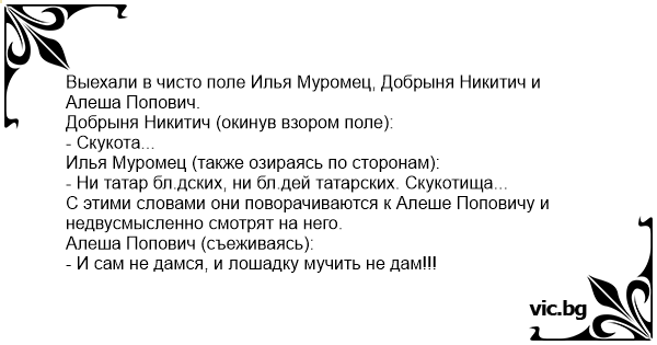 С этими словами они поворачиваются к Алеше Поповичу и недвусмысленно смотрят на него.