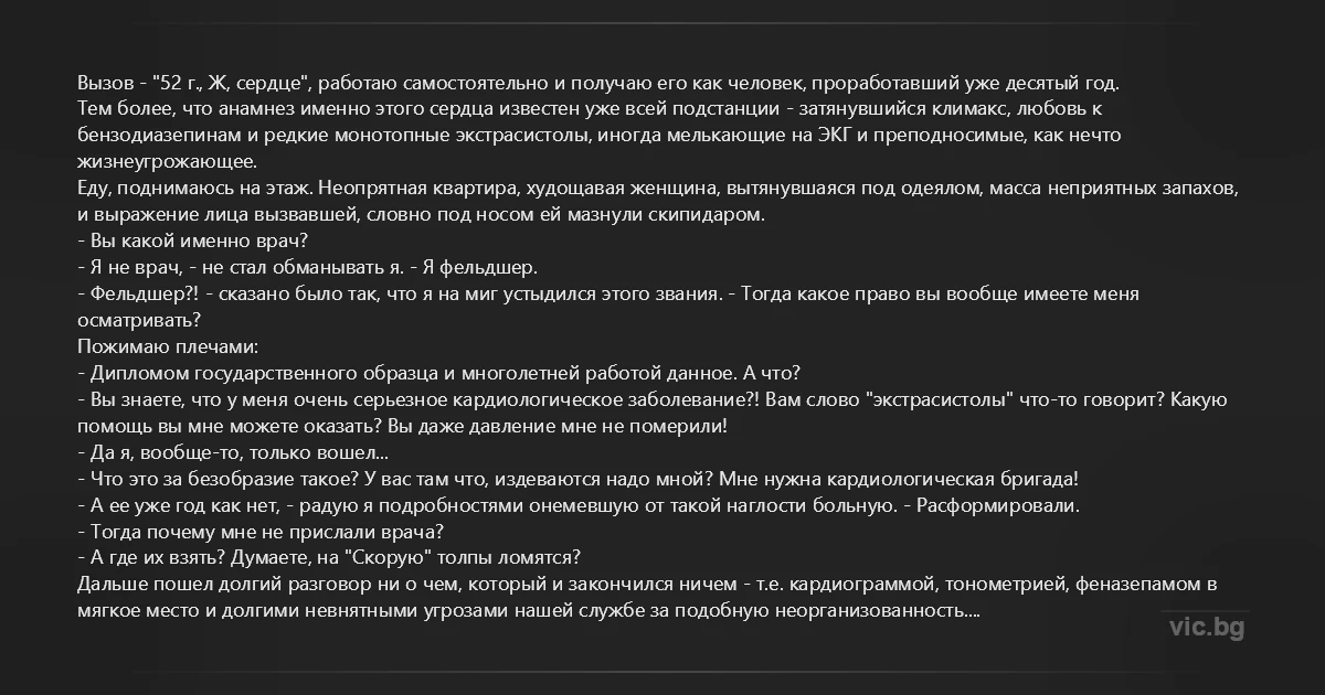 Вы доносили, когда врач, дошедший до нервного срыва, ругал вас за необоснованный вызов.