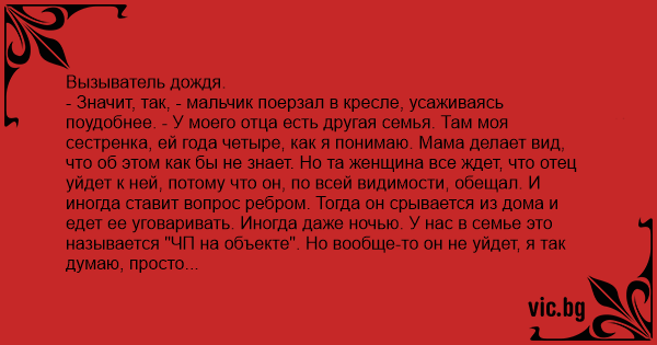 - Ага, только я тебе сначала расскажу историю про "вызывателя дождя".