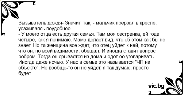 Вызыватель дождя- Значит, так, - мальчик поерзал в кресле, усаживаясь поудобнее.