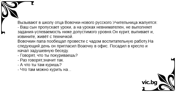 Вызывают в школу отца Вовочки-нового русского.Учительница жалуется: