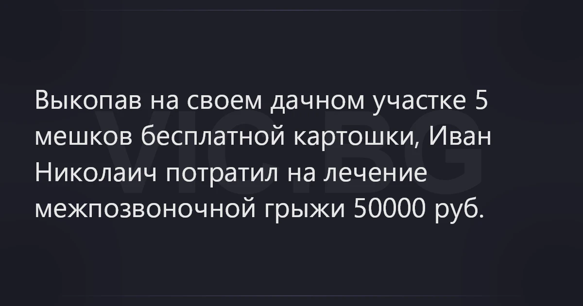 Выкопав на своем дачном участке 5 мешков бесплатной картошки, Иван Николаич потратил на лечение межпозвоночной грыжи 50000 руб.