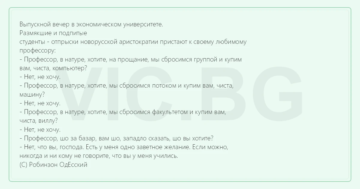 - Профессор, в натуре, хотите, мы сбросимся потоком и купим вам, чиста,