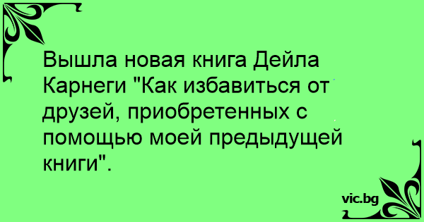 Вышла новая книга Дейла Карнеги "Как избавиться от друзей, приобретенных с помощью моей предыдущей книги".