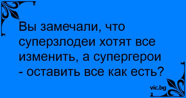 Вы замечали, что суперзлодеи хотят все изменить, а супергерои - оставить все как есть?