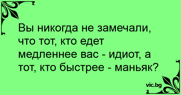 Вы никогда не замечали, что тот, кто едет медленнее вас - идиot, а тот, кто быстрее - маньяк?