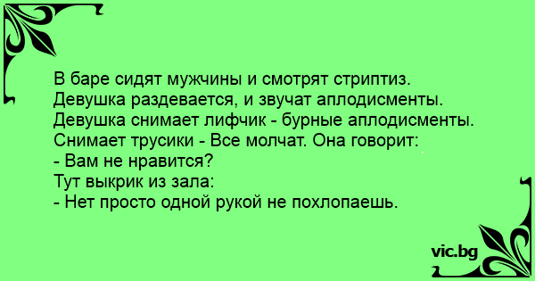 Det var fullt ös på sexshowen. När den var klar så var det helt tyst i publiken. Då sa tjejen på scenen: - Ni kan väl ge mig en liten applåd i alla fall!? Då hörde man en röst från publiken: - Man...