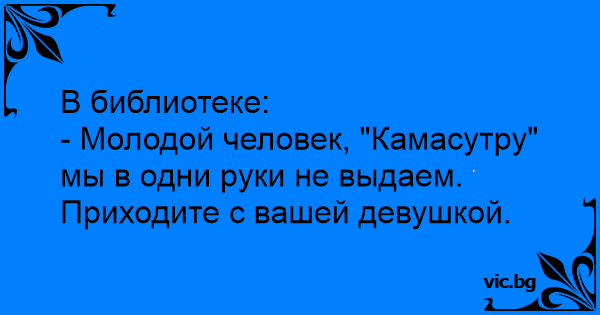 - Молодой человек, "Камасутру" мы в одни руки не выдаем. Приходите с вашей девушкой.