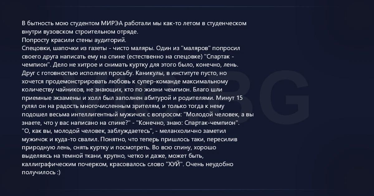 знаете, что у вас написано на спине?" - "Конечно, знаю: Спартак-чемпион".