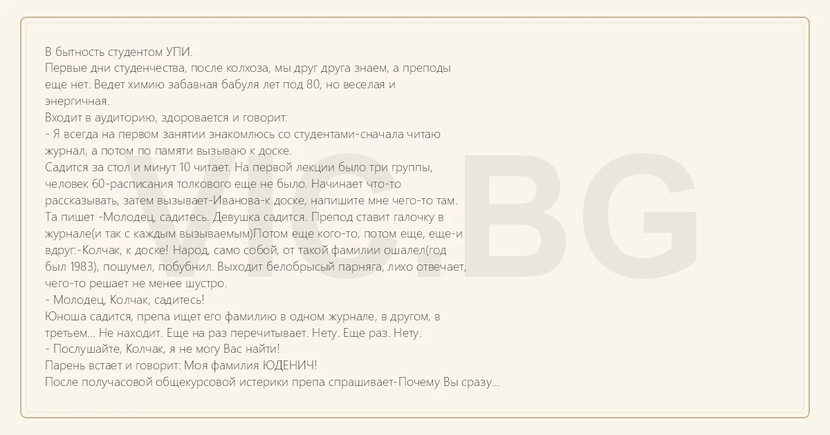 вдруг:-Колчак, к доске! Народ, само собой, от такой фамилии ошалел(год