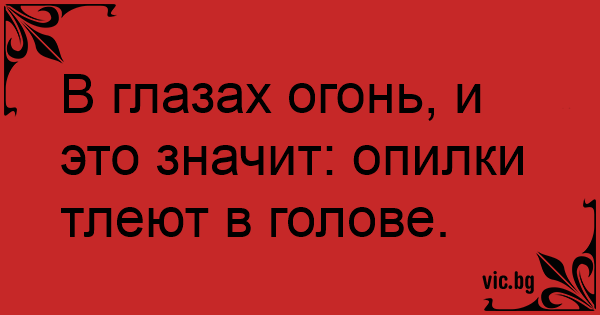 В глазах огонь, и это значит: опилки тлеют в голове.