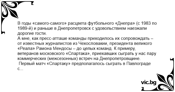 А мне, как пресс-атташе команды приходилось их сопровождать – от известных журналистов из Чехословакии, президента великого «Реала» Рамона Мендосы – до целых команд. К примеру, ветеранов московского «Спартака», приехавших сыграть у нас пару коммерческих (межсезонных) встреч на Днепропетровщине.