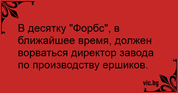 В десятку "Форбс", в ближайшее время, должен ворваться директор завода по производству ершиков.
