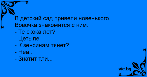 В детский сад привели новенького. Вовочка знакомится с ним.