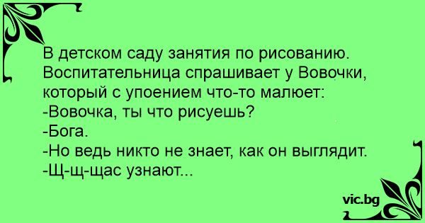 В детском саду занятия по рисованию. Воспитательница спрашивает у Вовочки, который с упоением что-то малюет: