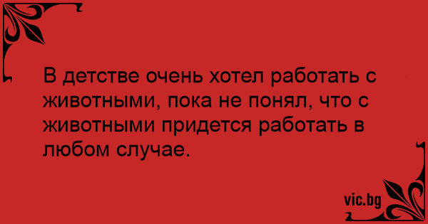 В детстве очень хотел работать с животными, пока не понял, что с животными придется работать в любом случае.