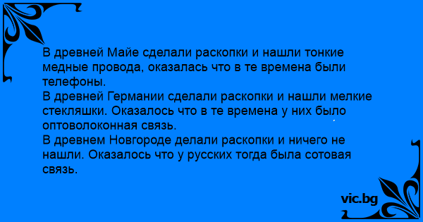 В древнем Новгороде делали раскопки и ничего не нашли. Оказалось что у русских тогда была сотовая связь.