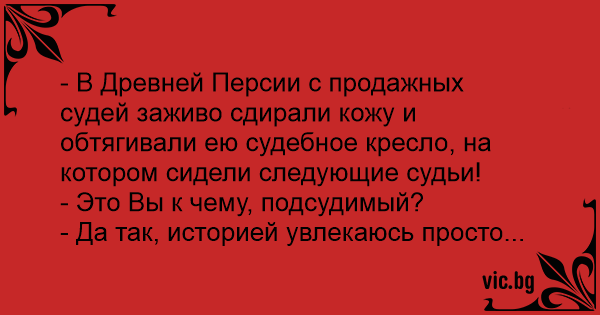 - В Древней Персии с продажных судей заживо сдирали кожу и обтягивали ею судебное кресло, на котором сидели следующие судьи!
