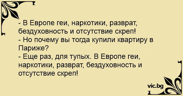 - Еще раз, для тупых. В Европе геи, наркотики, разврат, бездуховность и отсутствие скреп!