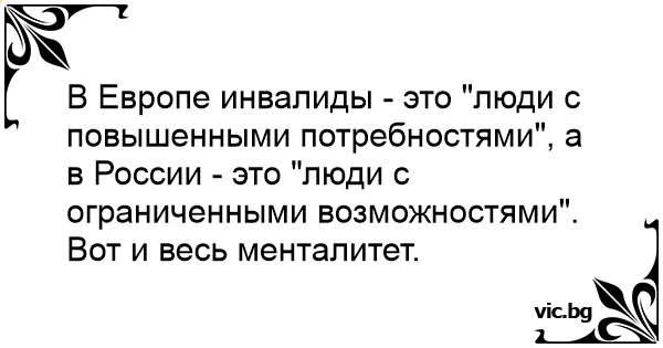 В Европе инвалиды - это "люди с повышенными потребностями", а в России - это "люди с ограниченными возможностями".