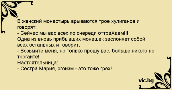 Одна из вновь прибывших монашек заслоняет собой всех остальных и говорит: