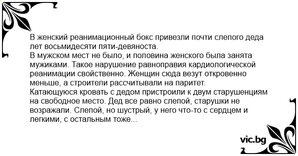 В женский реанимационный бокс привезли почти слепого деда лет восьмидесяти пяти-девяноста.