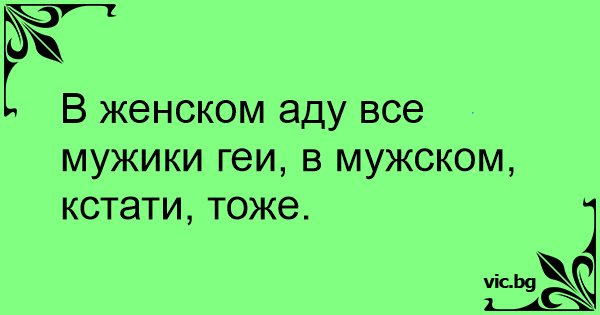 В женском аду все мужики геи, в мужском, кстати, тоже.