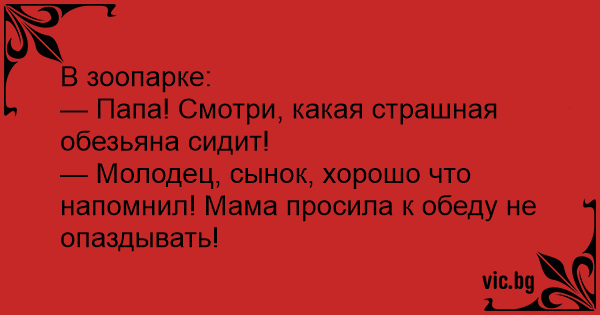 — Молодец, сынок, хорошо что напомнил! Мама просила к обеду не опаздывать!