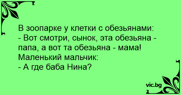 - Вот смотри, сынок, эта обезьяна - папа, а вот та обезьяна - мама!