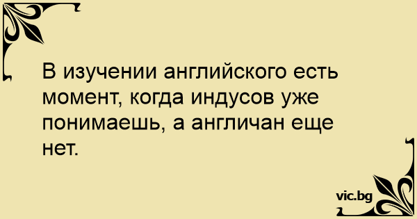 В изучении английского есть момент, когда индусов уже понимаешь, а англичан еще нет.