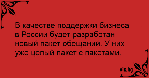 В качестве поддержки бизнеса в России будет разработан новый пакет обещаний. У них уже целый пакет с пакетами.