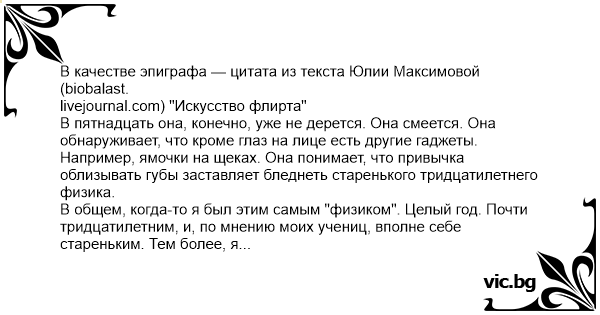 В качестве эпиграфа — цитата из текста Юлии Максимовой (biobalast.
