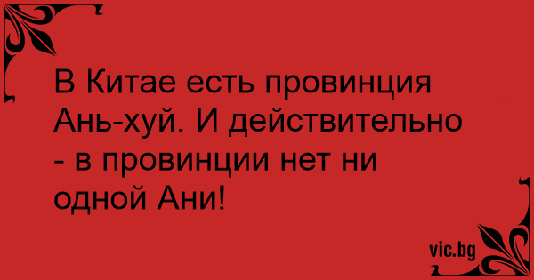 В Китае есть провинция Ань-хуй. И действительно - в провинции нет ни одной Ани!