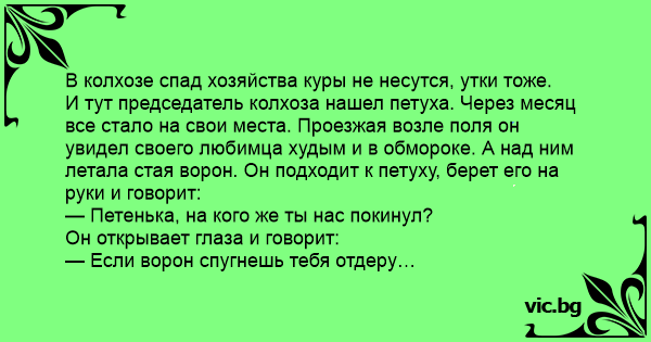 В колхозе спад хозяйства куры не несутся, утки тоже.