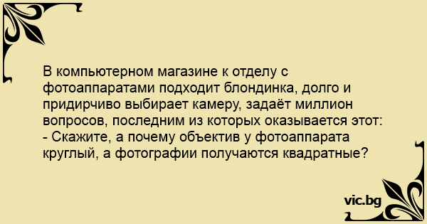- Скажите, а почему объектив у фотоаппарата круглый, а фотографии получаются квадратные?