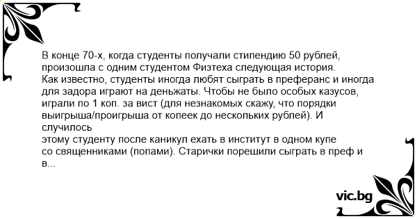 Как известно, студенты иногда любят сыграть в преферанс и иногда