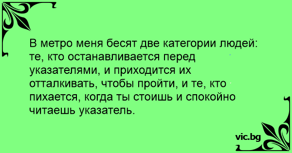 те, кто останавливается перед указателями, и приходится их отталкивать, чтобы пройти, и те, кто пихается, когда ты стоишь и спокойно читаешь указатель.