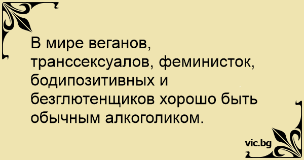 В мире веганов, транссексуалов, феминисток, бодипозитивных и безглютенщиков хорошо быть обычным алкоголиком.