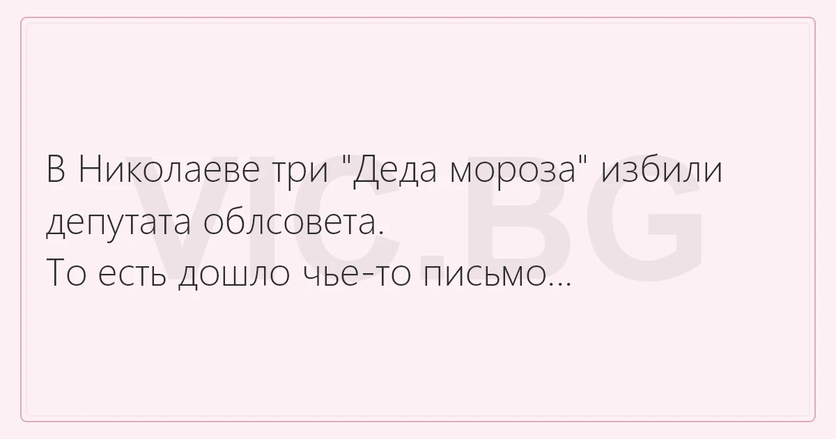 В Николаеве три "Деда мороза" избили депутата облсовета.То есть дошло чье-то письмо... 16 0 0 Анекдоты